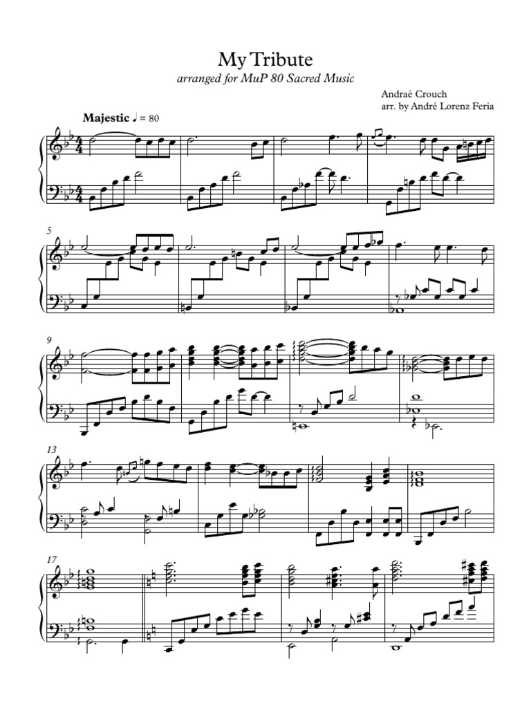 Download My Tribute Sheet Music Free Download Pictures. Download (free) or order my tribute sheet music from the artist andrae crouch arranged for piano, organ, guitar and more. Free sheet music preview of my tribute, (easy) for piano solo by andrae crouch.